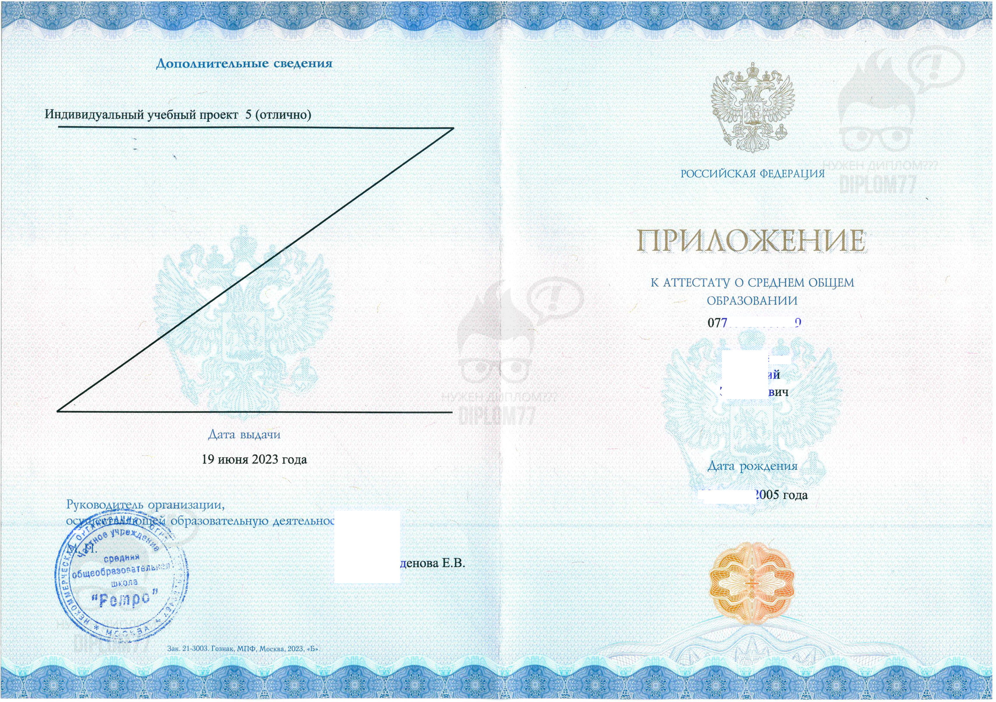 Вопрос: Мне нужен аттестат 11 класса, год выпуска 2023, город Москва, с QR-кодом и апостилем