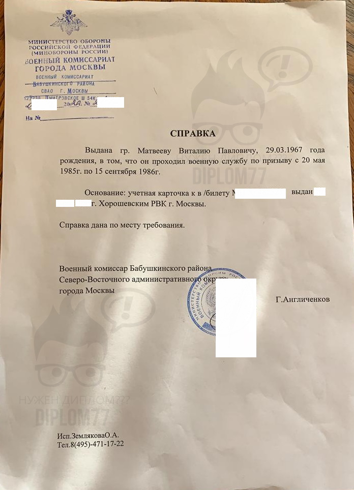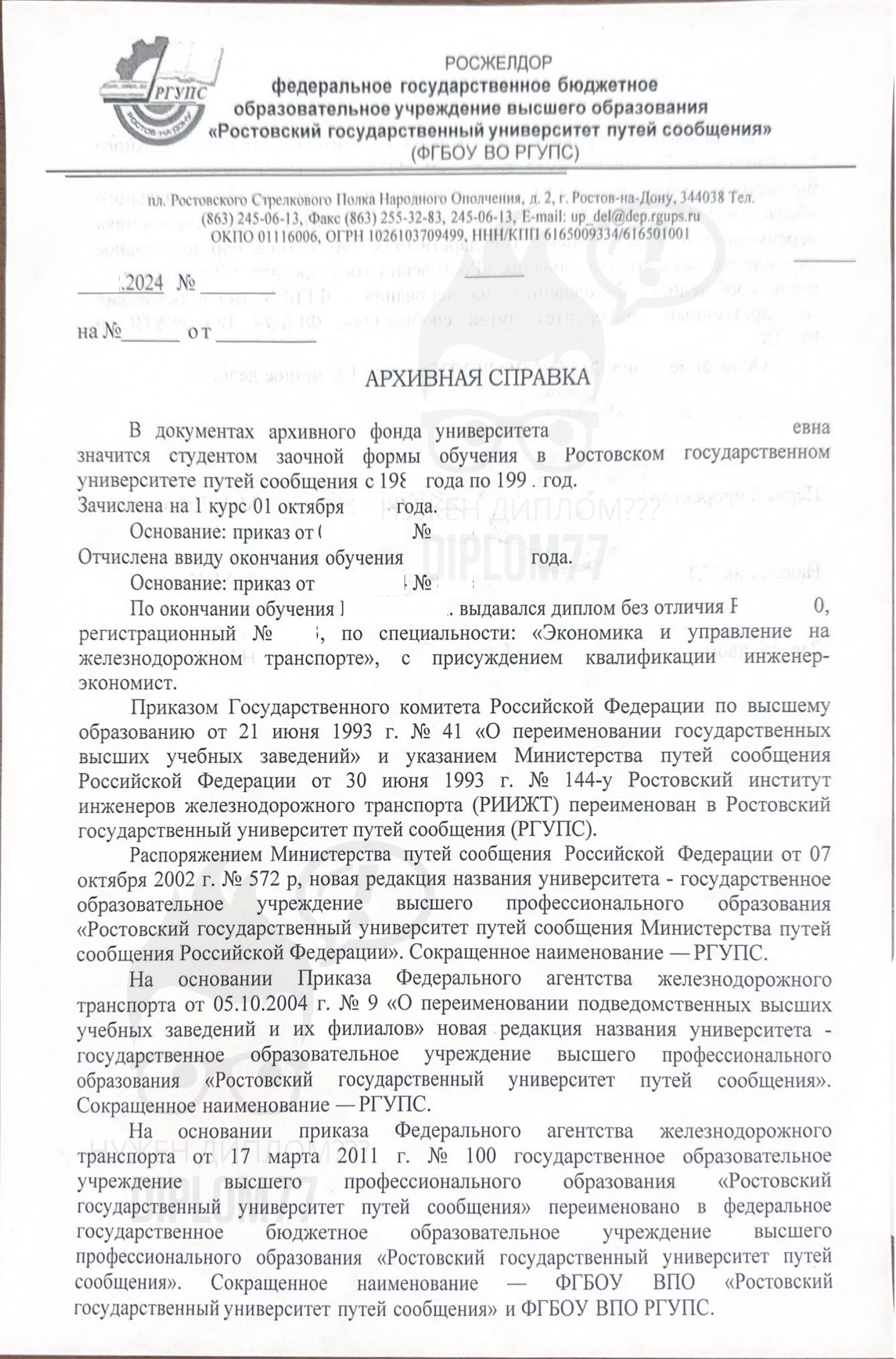 Наша компания «Диплом77» может сделать вам любые архивные справки из архивов России и других стран. Постоянно пополняем нашу базу образов различных учреждений. Всегда готовы сделать архивную справку по вашему образцу.