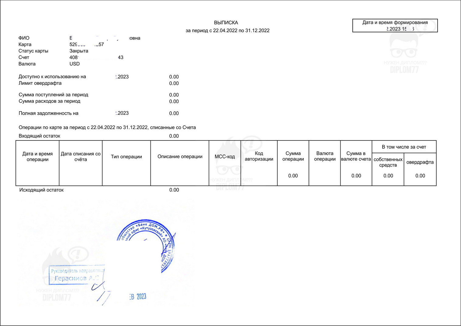 Ответ: Можем сделать. Справка из банка стоит 10 000 рублей. Делается за 1-2 рабочих дня и плюс время доставки. Отправить информацию можно на WhatsApp +79052590480 или е-мейл zakaz@diplom77.com (лучше выслать образец). Подробнее о вариантах оплаты и доставки здесь: https://diplom77go.cfd/dostavka