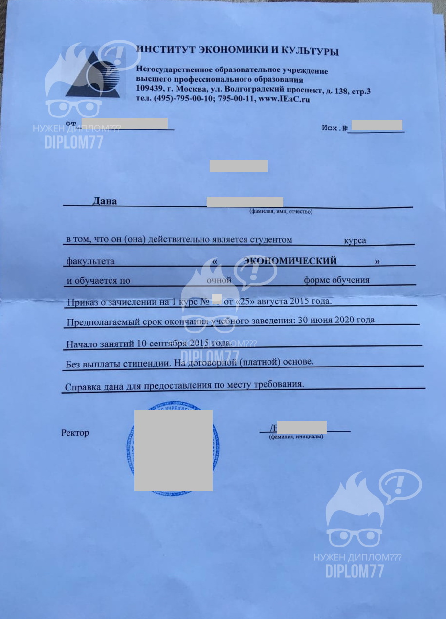 Задумались над вопросом: «Где берется справка, что учусь в институте?» Такой документ выдается в деканате или отделе кадров студентов учебного заведения. Но если вы не учитесь уже в вузе или не имеете возможности получить документ официально, то лучше купить справку об учёбе в Диплом77.