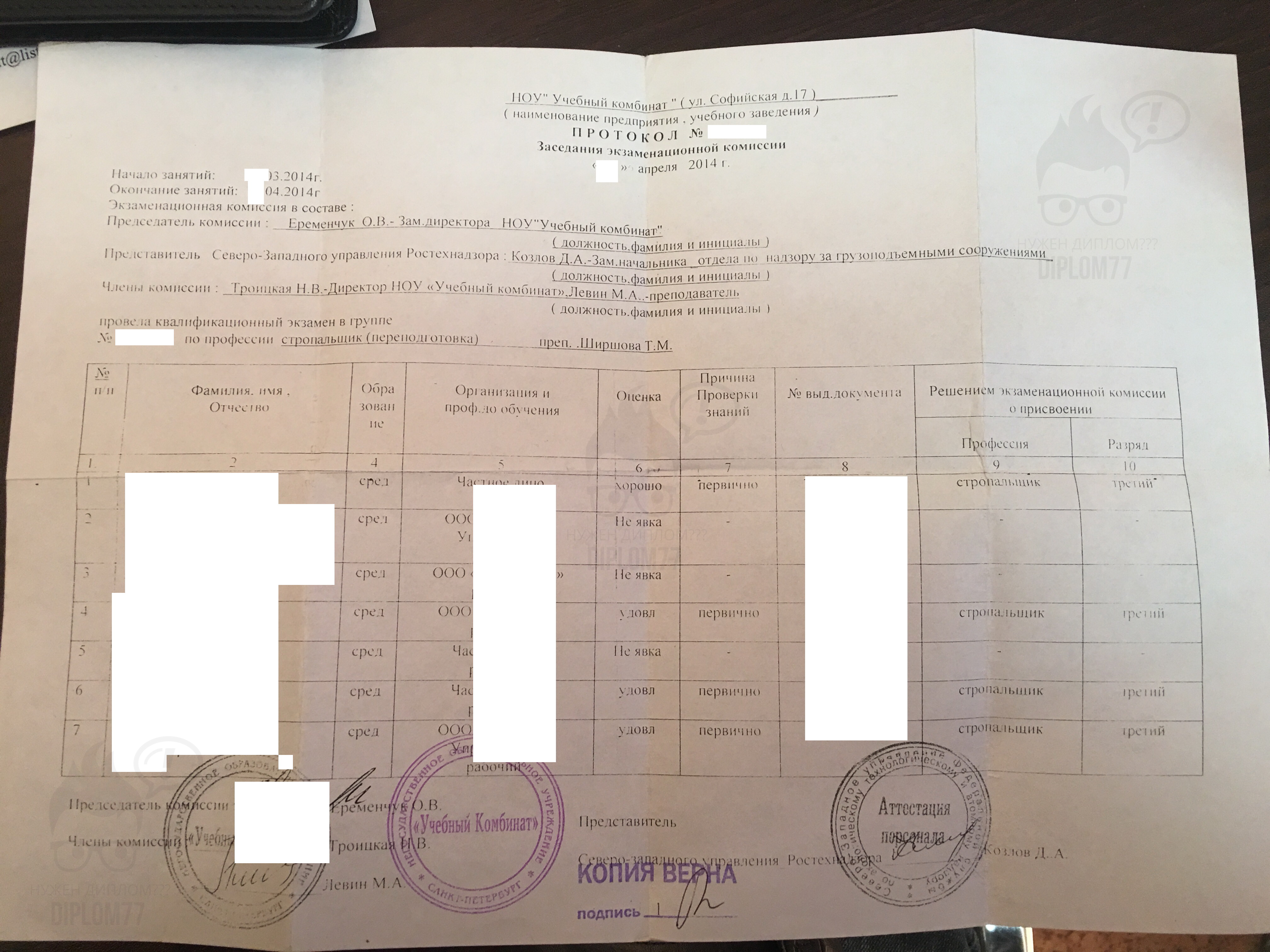 Ответ: Здравствуйте. Удостоверение стропальщика любого разряда стоит 7 000 рублей. В комплекте будет протокол о прохождении аттестации в учебном комбинате с представителем Ростехнадзора. Делается за 1-2 рабочих дня и плюс время доставки. Заказать документ можно (текущая страница). Подробнее о вариантах оплаты и доставки здесь: https://diplom77go.cfd/dostavka